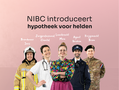 NIBC introduceert met trots de "hypotheek voor helden". Een bestaande NIBC (Extra) hypotheek, waarbij we het acceptatieproces hebben afgestemd op de helden in onze maatschappij, waaronder zorgpersoneel, politieagenten, brandweerlieden, militair personeel en natuurlijk leerkrachten. Hiermee biedt de hypotheek voor helden een unieke onderscheidende oplossing voor onze hulpverleners binnen de vitale sector.